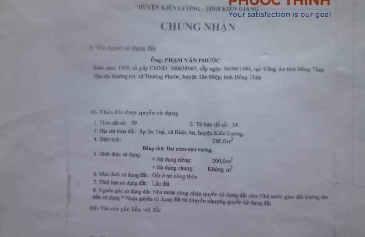 Diện tích: 200m2 đất ở nông thôn